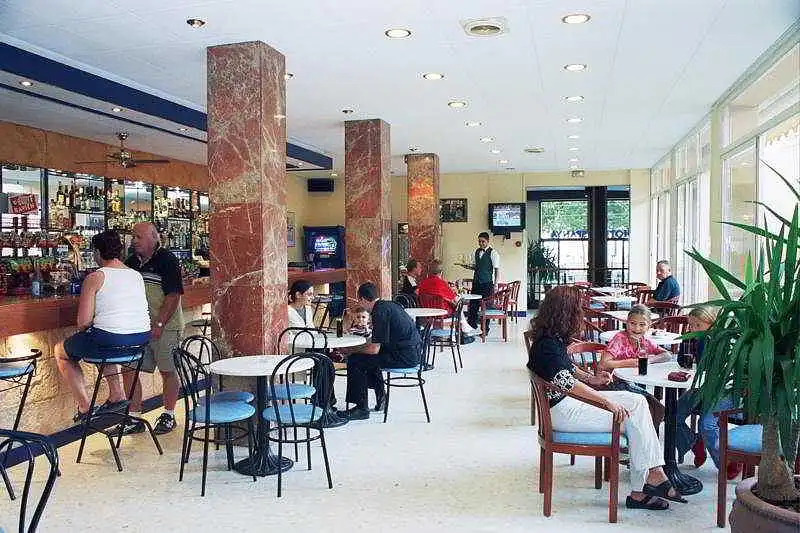 Renovated in 2010, this family friendly beach hotel can look back on over 45 years of history: starting out as Café Espanya and a dance club, then some years later, the famous cinema Espanya and eventually, at the end of the 1960s with the onset of tourism from Britain it was transformed into the modern 6-storey, 100-room hotel which guests see now. The hotel is an ideal place for guests travelling alone, with friends or with family. Facilities on offer to guests include a lobby area with a 24-hour reception, a hotel safe, a currency exchange facility and lift access. It also offers a café, a bar, a games room, a TV lounge and a restaurant. Guests may also take advantage of the Internet access (charges apply) and bicycle rental (charges apply). The younger guests will enjoy the childrens playground and the kids club.