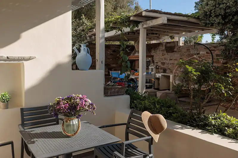 Guests at 9 Muses Naxos can expect top-notch amenities and exceptional service. The apartments boast the classic Cycladic white color, radiating beautifully in the Greek sunshine, and feature traditional arches on their facades, along with comfortable verandas.