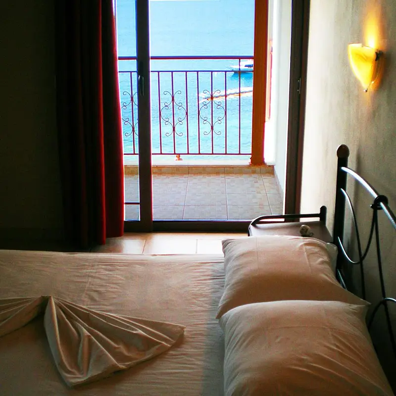 Toate camerele au aer conditionat (5 euro/zi, la fata locului), balcon sau terasa, chicineta utilata, frigider, baie cu dus, TV. Camerele Studio cu vedere spre mare au capacitate maxima de 2 adulti si 1 copil. Camerele Studio triplu au capacitate maxima de2 adulti si 2 copii sau 3 adulti.