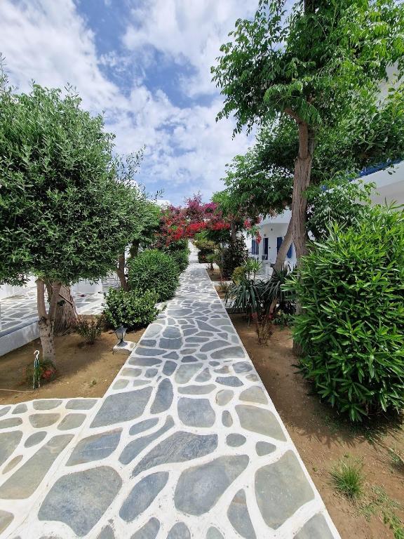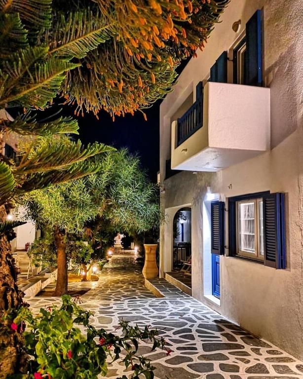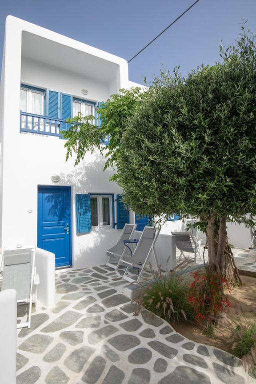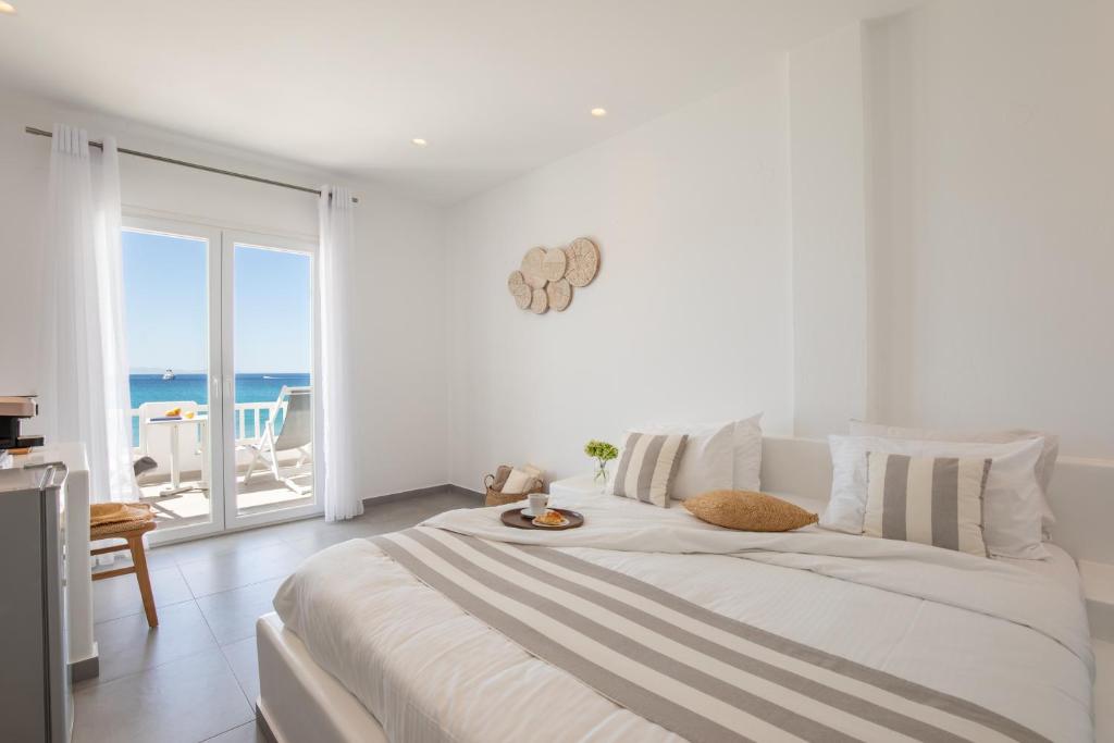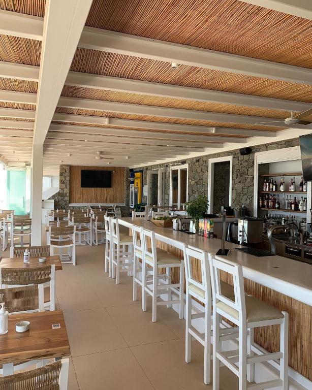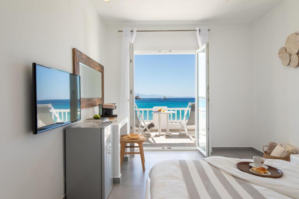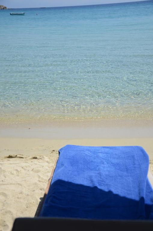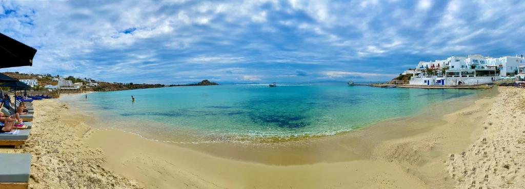 Restaurantul hotelului servește preparate mediteraneene autentice cu vedere panoramică la mare. Principalele facilități includ piscină in aer liber, bar pe plajă și zonă de lounge cu vedere la apus. Orașul Mykonos se află la 4 km distanță, iar hotelul oferă serviciu de transfer contra cost.