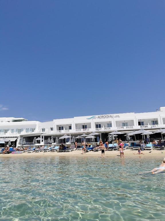 Acrogiali Beachfront Hotel Mykonos se află intr-o poziție privilegiată, chiar pe plaja cu nisip fin din Platys Gialos, una dintre cele mai apreciate zone din Mykonos. Acest hotel boutique imbină perfect stilul arhitectural cicladic cu facilitățile moderne.