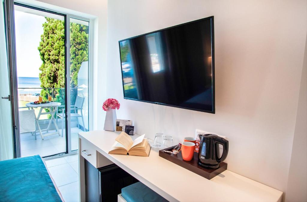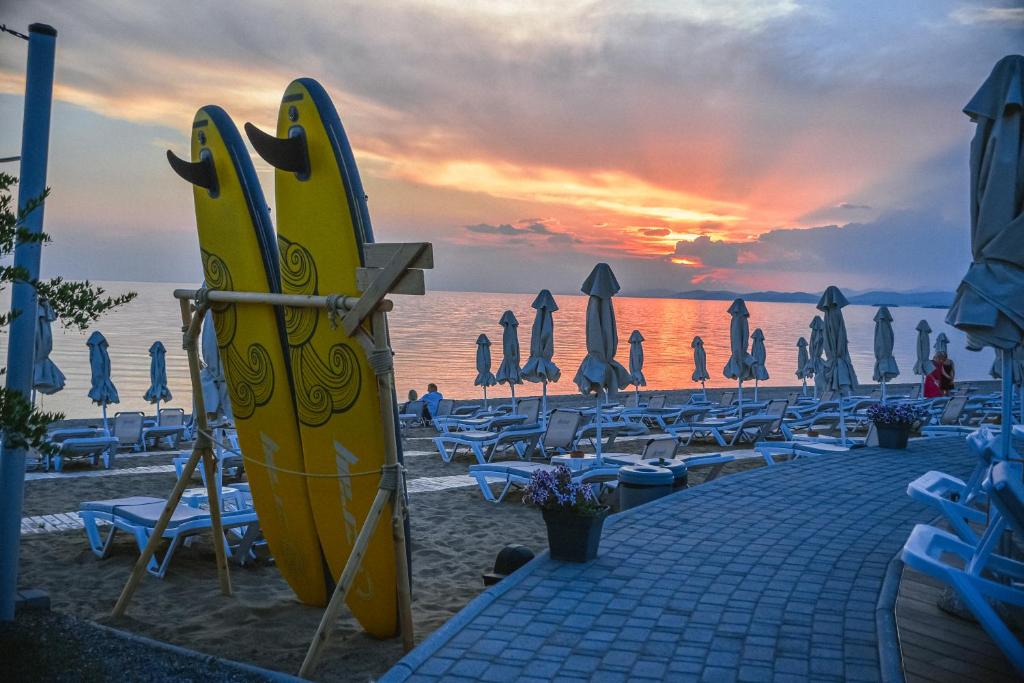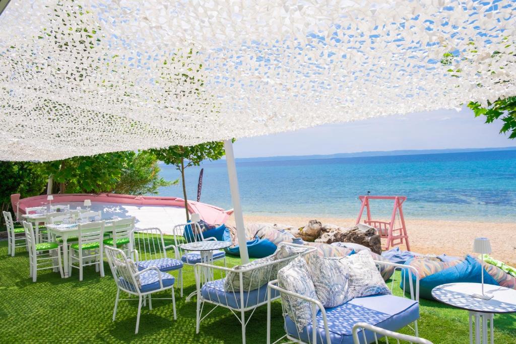 Poziționarea excelentă permite oaspeților să exploreze cu ușurință cele mai frumoase plaje din peninsulă. La doar cațiva pași se află magazine, taverne tradiționale grecești și cafenele. Hotelul este alegerea perfectă pentru cei care caută o vacanță relaxantă intr-un cadru intim și rafinat pe coasta Mării Egee.