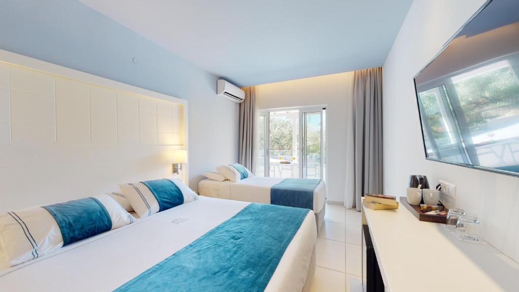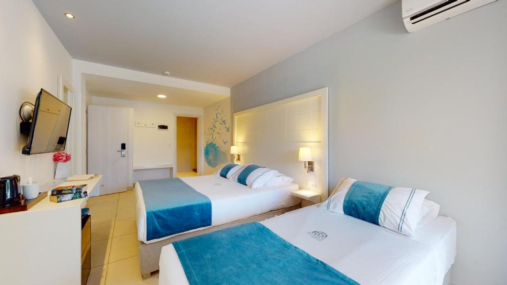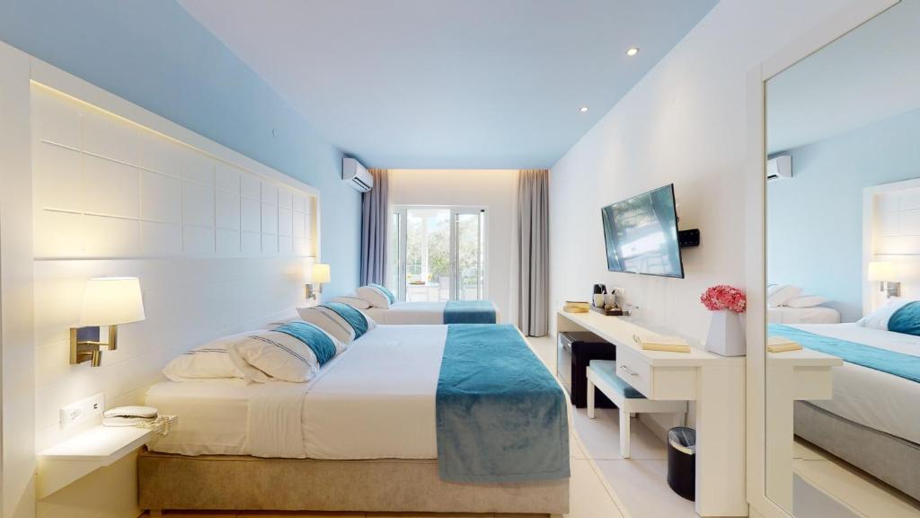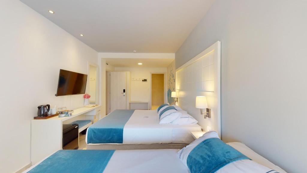 Camerele luminoase și spațioase sunt decorate in nuanțe calde și dispun de balcoane sau terase cu vedere spre mare sau grădină. Facilitățile includ piscină exterioară cu șezlonguri și umbrele, restaurant cu specific mediteranean și bar la piscină.