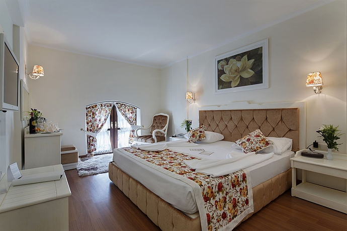 HOTEL: Este hotel cuenta con 30 habitaciones y suites. Los clientes disponen de aire acondicionado, un vestíbulo con servicio de salida express, una recepción, caja de seguridad, servicio de cambio de moneda y ascensor. Se ofrece internet y un restaurante. Con cargo extra encontrará servicio de habitaciones, servicio de lavandería y un parking. SITUACIÓN: Está situado en el centro de la ciudad del centro histórico. A 50 metros puede encontrar el mar. A 300 metros dispone de una playa. A 300 metros hay una parada de autobús. Situado a 3 km de un parque. Está a 25 kilómetros del aeropuerto de Antalya. HABITACIÓN: Los clientes tienen disponible 26 habitaciones estándar, 2 habitaciones familiares, 1 habitación king suite con bañera hidromasaje, ducha y secador de pelo. Además tienen teléfono de línea directa, televisión satélite, minibar y sistema de aire acondicionado individual. COMIDAS: Puede reservar en alojamiento y desayuno o media pensión. En lo referente a lo gastronómico el establecimiento dispone de almuerzo y cena servidas en buffet. MÉTODOS DE PAGO: Se acepta American Express, Diners Club y Mastercard. OBSERVACIONES: Dispone de wifi en el vestúbulo.