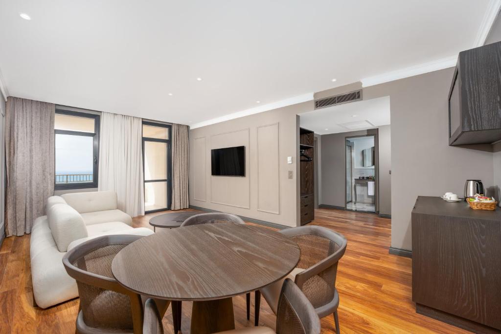Restaurantul principal servește preparate din bucătăria internațională in sistem bufet, iar cele 3 restaurante à la carte propun specialități din bucătăria italiană, turcească și din fructe de mare. Programul de animație include activități sportive ziua și spectacole seara.