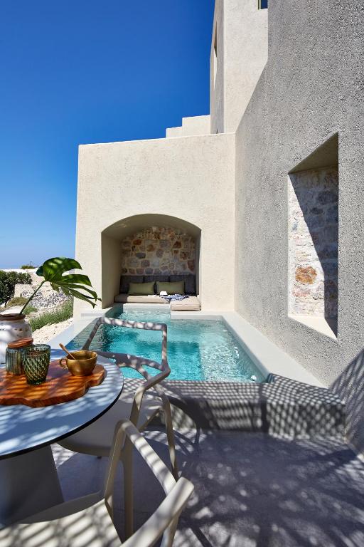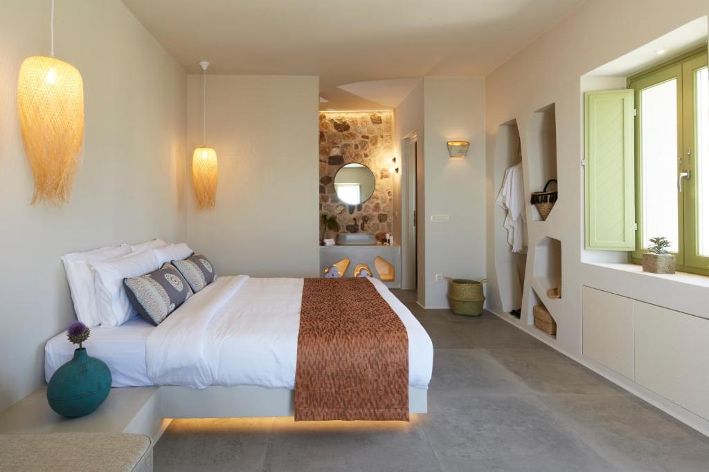 Acest proprietate in stil cicladic oferă vedere la Marea Egee și la munte și pune la dispoziție unități de cazare elegantă, care sunt decorate intr-o paletă de culori caldă și imbină materialele naturale cu designul modern. Camerele dotate cu aerul in aer liber.