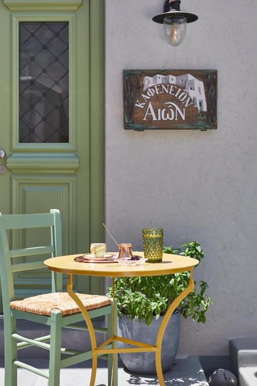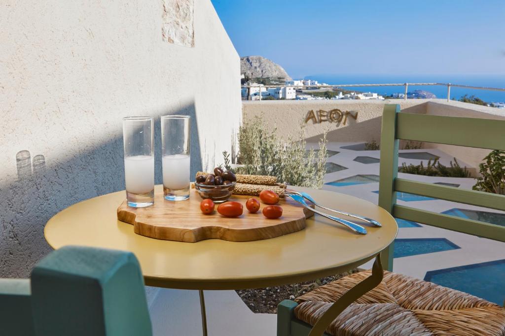 Aeon Suites se află in satul pitoresc Pyrgos din centrul insulei Santorini. Proprietatea este situată la inălțime pe o faleză, chiar desubtul castelului medieval. Oaspeții beneficiază de WiFi gratuit in intreaga incintă.
