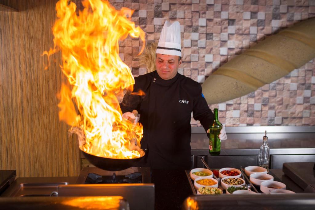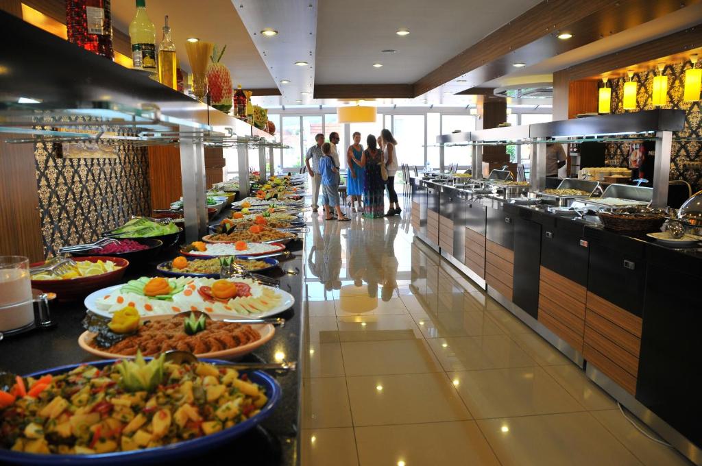 Opțiuni de luat masa: Hotelul are un restaurant care servește preparate din bucătăria mediteraneană, turcească și internațională, un bar și un bar la piscină. Micul dejun include specialități locale, produse de patiserie proaspete și o varietate de băuturi.
