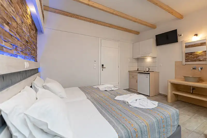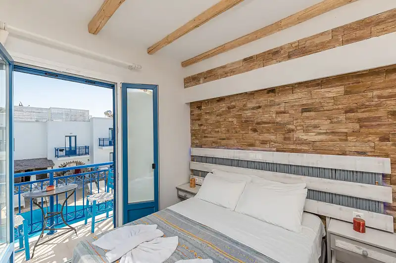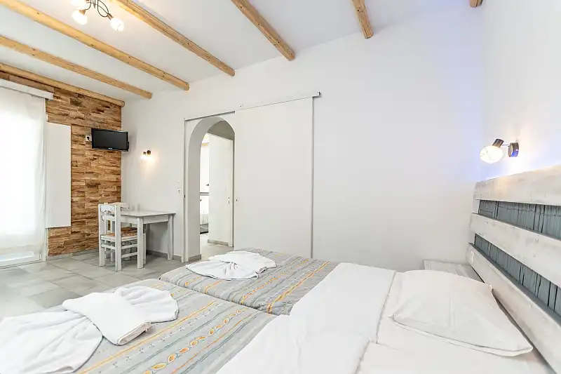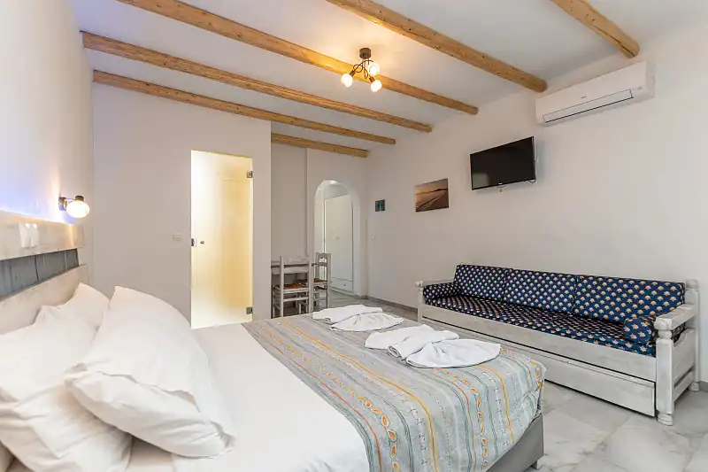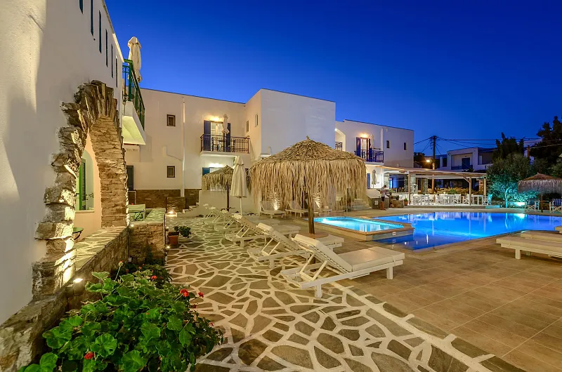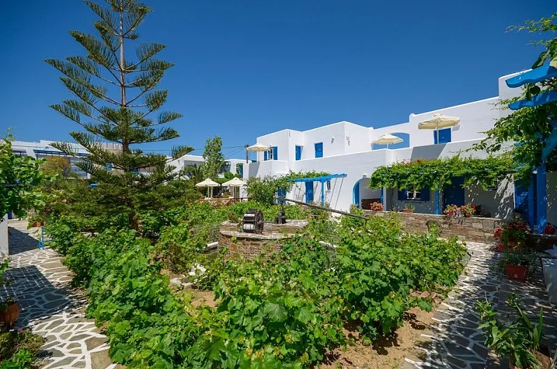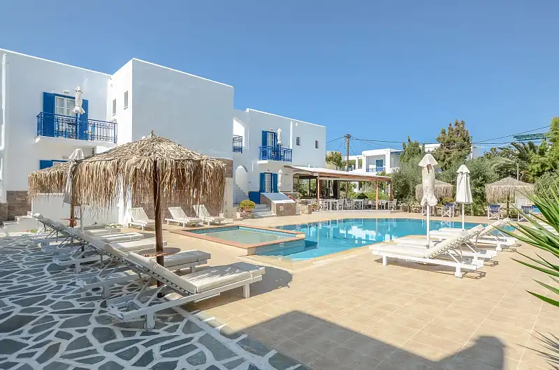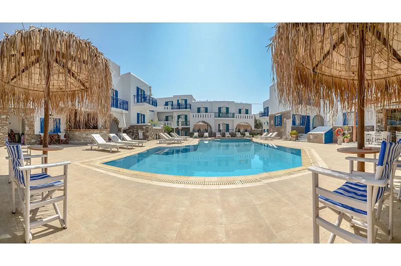 The hotel’s location, just 4km from Naxos Town, serves as a convenient base. Frequent bus/taxi service is available 150 metres away. The hotel's staff can arrange car or bike rentals, excursions, and offer tips on sightseeing.