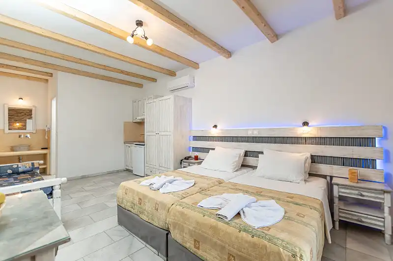 Guests at Agios Prokopios Hotel can choose between charming rooms, self catering studios and apartments. All units include balcony with view to the pool or the garden, air conditioning, fridge and tea/coffee making facilities.