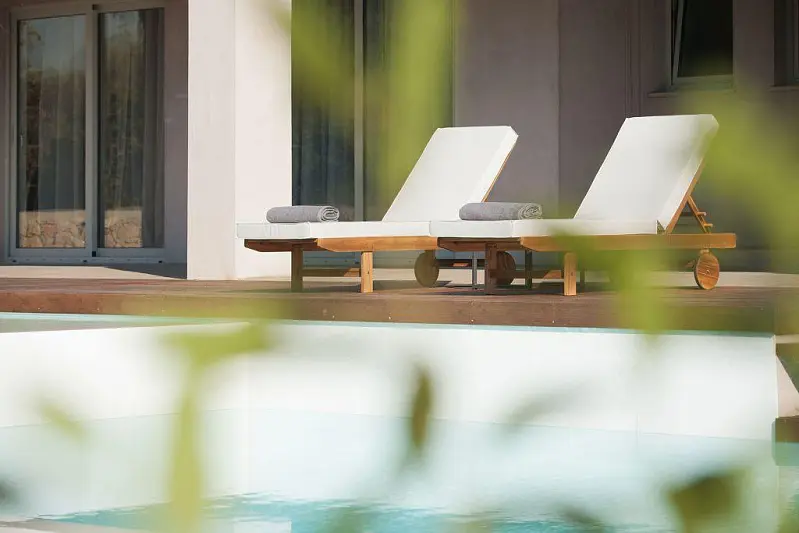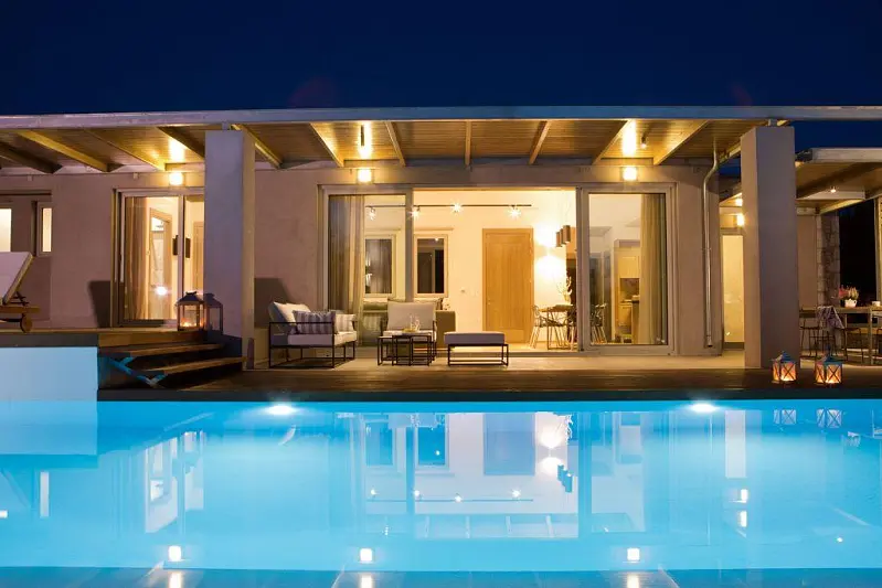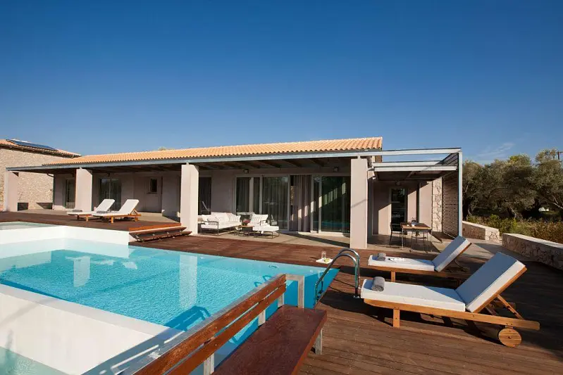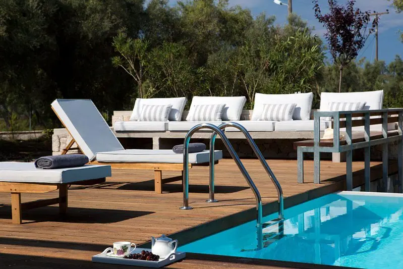 Each villa stands in its own garden with a private pool, a stone built barbeque among the mature olive trees , all fresco dining area ,stylish furniture, a modern designed and well equipped kitchen and spacious bedrooms with en-suite bathrooms providing comfort indoors and outdoors. Agrikies Villas are the ideal choice for large families or groups of friends.