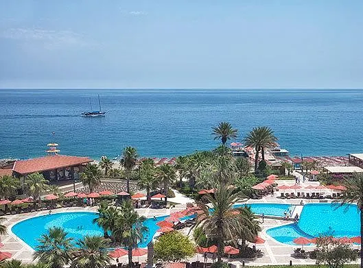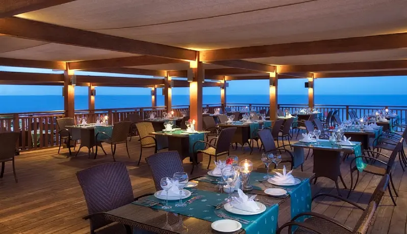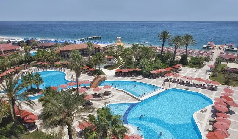 Hotelul dispune de: restaurant principal,2 restaurante A la carte, 4 baruri, piscina exterioara, piscina interioara, topogane, cabinet medical, coafor, rent a car, jacuzzi, sala fitness, volei la plaja, tenis de masa, sporturi acvatice fara motor, mini-fotbal, 2 terenuri de tenis, muzica live in anumite zile, programe de animatie, discoteca, internet Wi-Fi in lobby, sauna, masaj, biliard, internet cafe, sporturi acvatice cu motor, baie turceasca, piscina si loc de joaca pentru copii, mini-club.Plaja este proprie cu nisip/pietris, ponton, echipat cu sezlonguri, bar pe plaja.