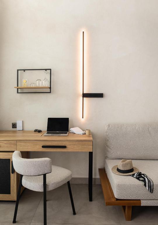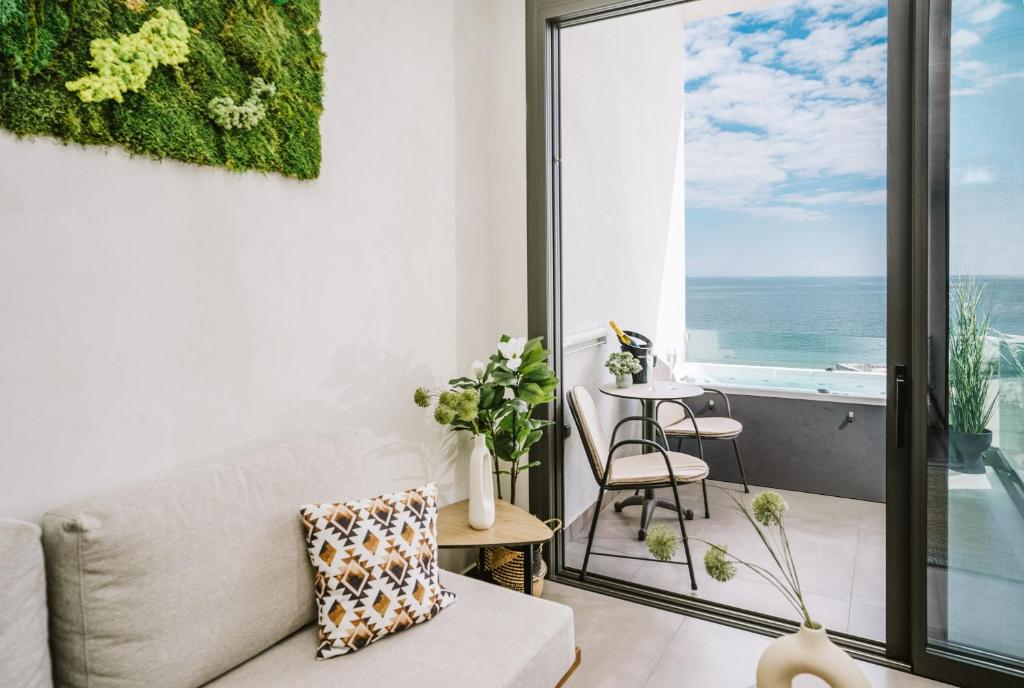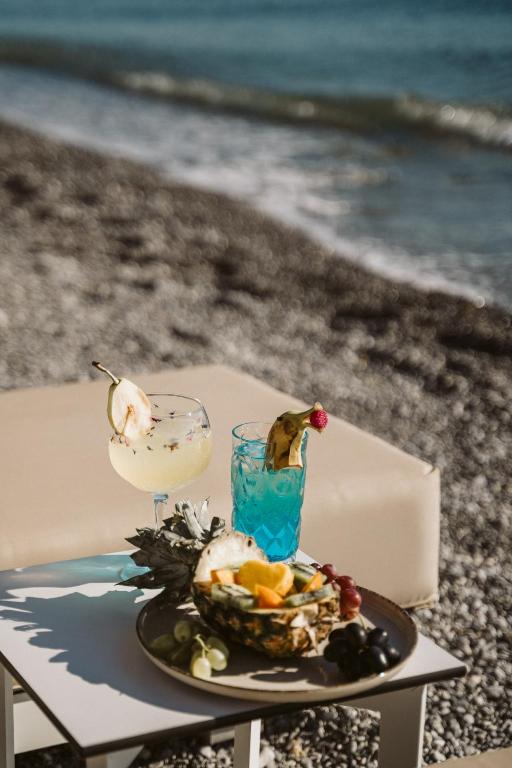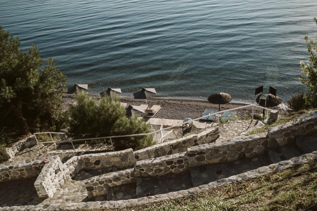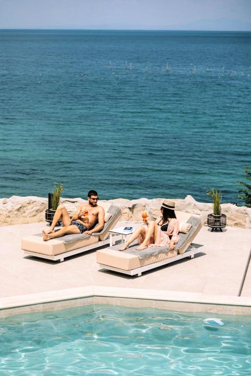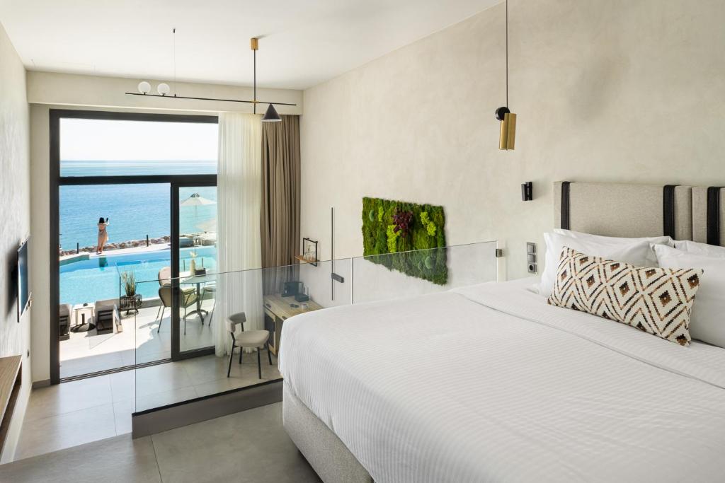 Camerele și suitele, decorate in tonuri naturale și dotate cu balcoane private, oferă un confort desăvarșit. Oaspeții se pot bucura de piscina infinity cu vedere panoramică, perfectă pentru momente de relaxare sub soarele grecesc.