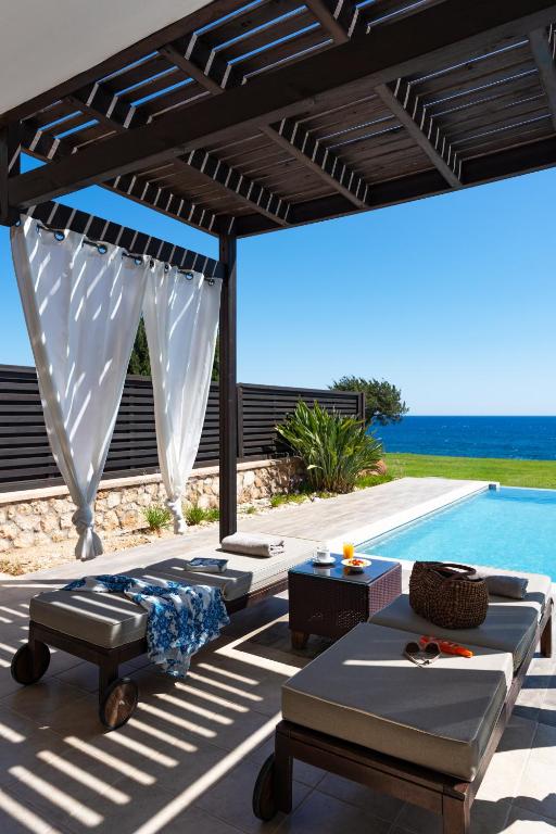 Al Mare Villas oferă studiouri și vile elegante, cu vedere captivantă la Marea Mediteraneană și vile cu piscine private. Acesta este situat strategic, pe coasta plajei Kiotari.