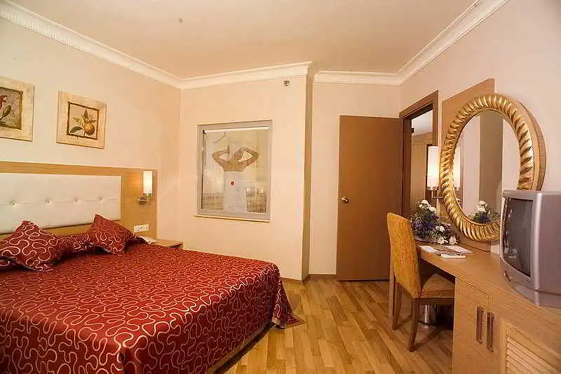With it magnificent location on a private sandy beach, this hotel offers a plethora of options for a fun holiday. There are countless shopping venues as well as bars and restaurants in the vicinity. The nearest public transport stop is only 500 m from the hotel, as do a range of nightclubs. Guests can venture out to the famous port town of Alanya to explore its bustling centre and stroll along its glorious harbour.