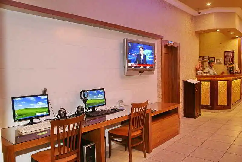 This city hotel is situated at the heart of the tourist area of Alanya with shops, restaurants and bars as well as links to the public transport system to be found in the hotels immediate vicinity while the beach is only 100m away. Ideal for beach lovers and those who enjoy being close to a resorts amenities, the pretty harbour area where there are a number of bars and nightclubs is a 15-20 minute walk. The hotel features an outdoor pool where guests can enjoy a refreshing dip and benefit from the on-site snack bar for a light meal during the day. A couple of computer terminals in the lobby area are available for guests use and there is a cosy bar where a pleasant evening can be spent.