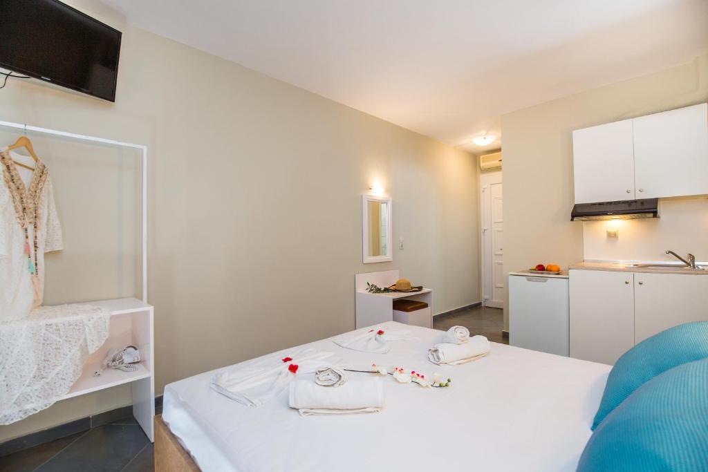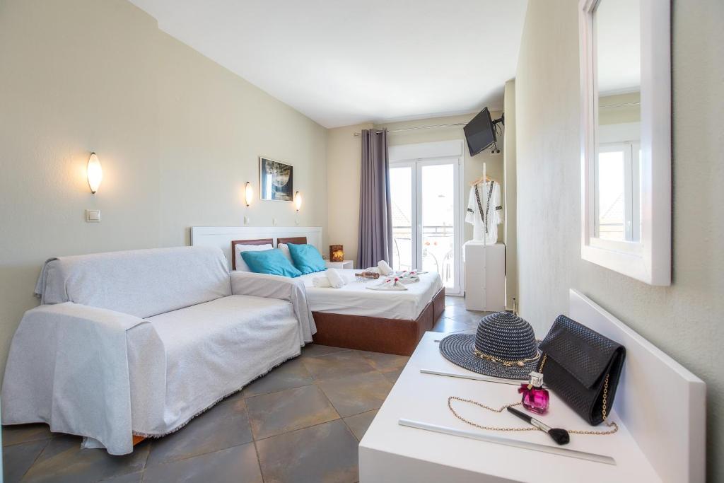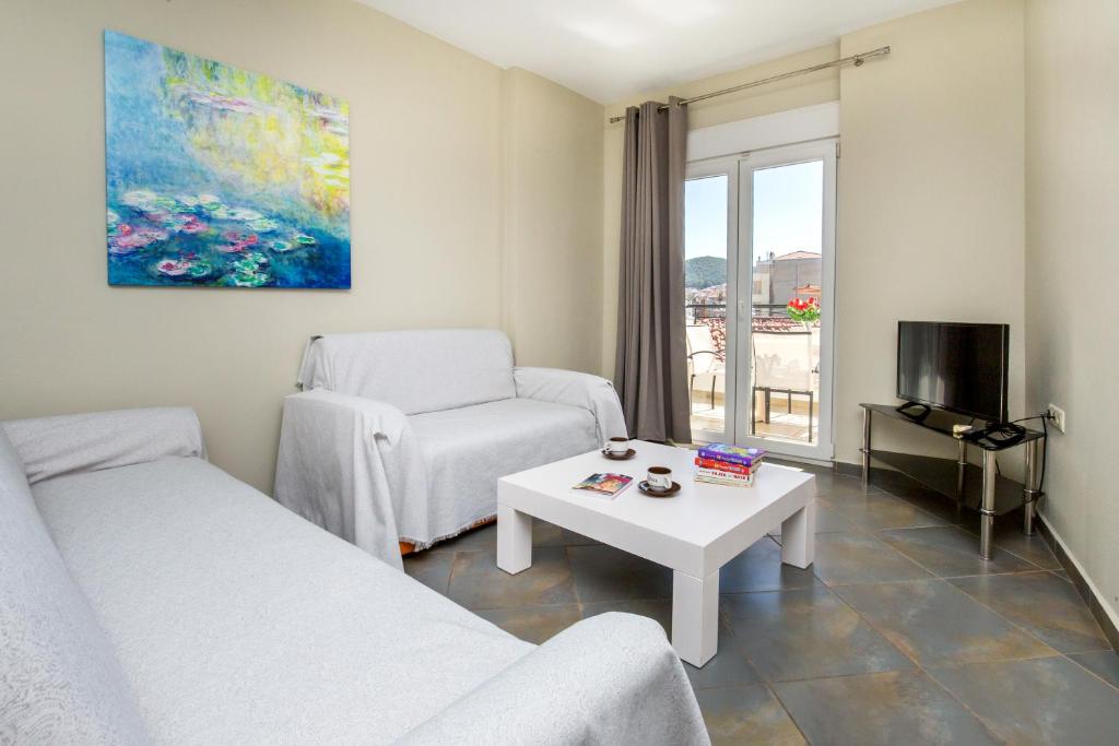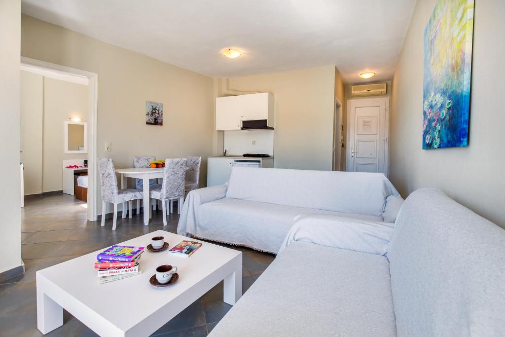 Oaspeții vor găsi magazine și restaurante la o plimbare de maxim 3 minute. Plaja Tripiti este la 2 km, iar Potos se află la 3 km. Portul Limenas este situat la 40 km.
