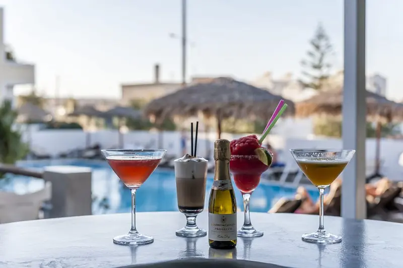 Este un hotel cochet, localizat la 50 metri de plaja, 4 km de aeroport si 10 km de Fira. Este alcatuit din 2 cladiri, cladirea principala pentru camere standard si superior si a doua cladire pentru studio-uri si apartamente. Hotelul pune la dispozitia turistilor o piscina cu terasa, dotata cu sezlonguri si umbrele.