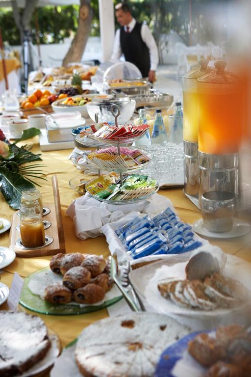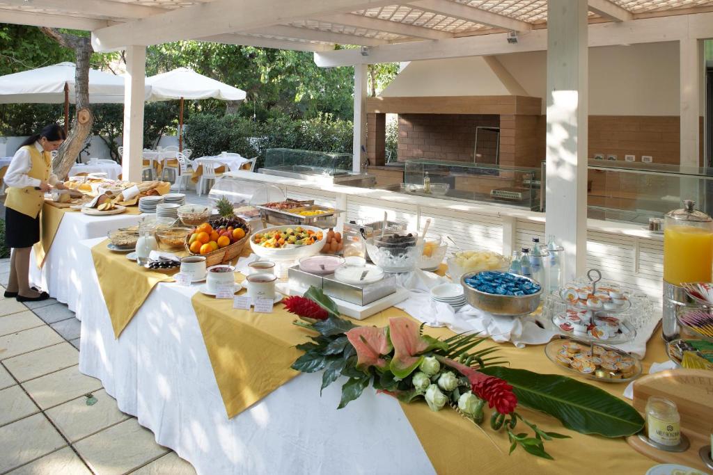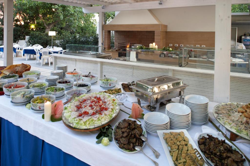 Restaurantul Mistral oferă vedere panoramică la marea albastră. Oaspeții pot savura preparate regionale tradiționale și mancăruri internaționale. De asemenea, in timpul sezonului de vară, hotelul pune la dispozitie restaurantul Oasis, care oferă grădină si grătar.
