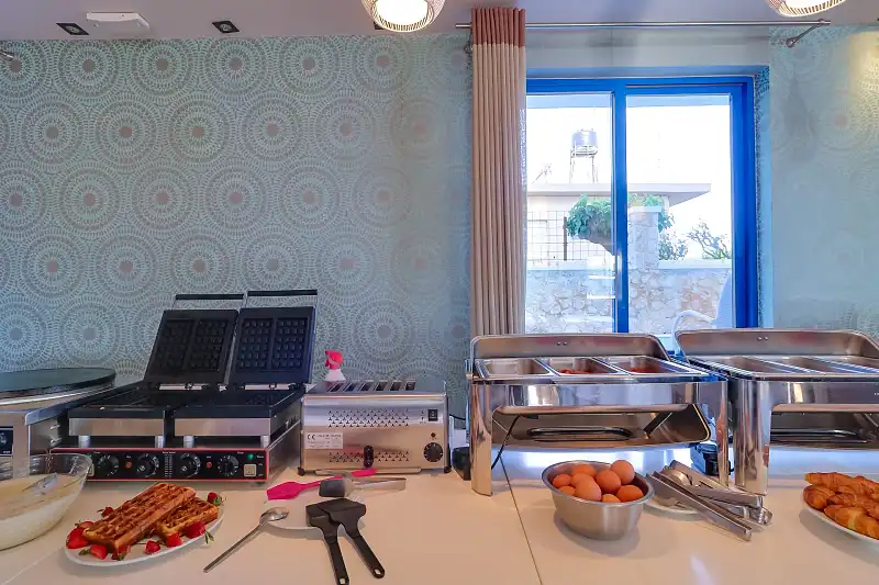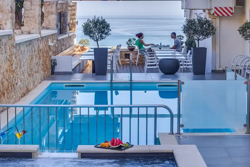 The hotel restaurant offers an outdoor patio with panoramic sea views and serves dinner and daily breakfast buffet. Rated a top restaurant in Chania Town, Theodosi Restaurant ranks #3 best restaurants for dinner in Chania Crete, as published on Tripadvisor for 2019.