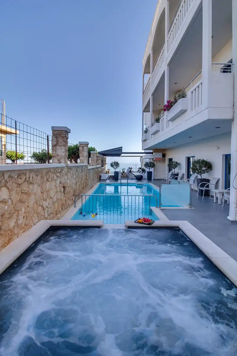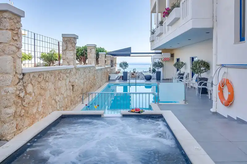 Hotel Alexis is located in a quiet neighborhood at the edge of Chania Town, overlooking the town and the sea, close to the beach, the Venetian Port and the Chania old town. Facilities include an outdoor pool, Jacuzzi and childrens pool.