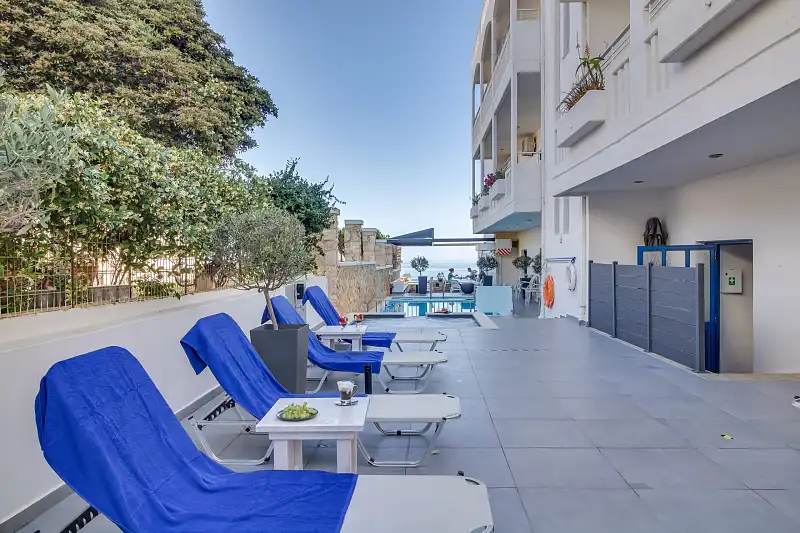 The hotel is close to the KTEL central bus station and 20 minutes from the Chania airport and Souda ferry terminal. Nearby is the National road junction to easily explore Chania and west Crete. Free parking is also available on site.