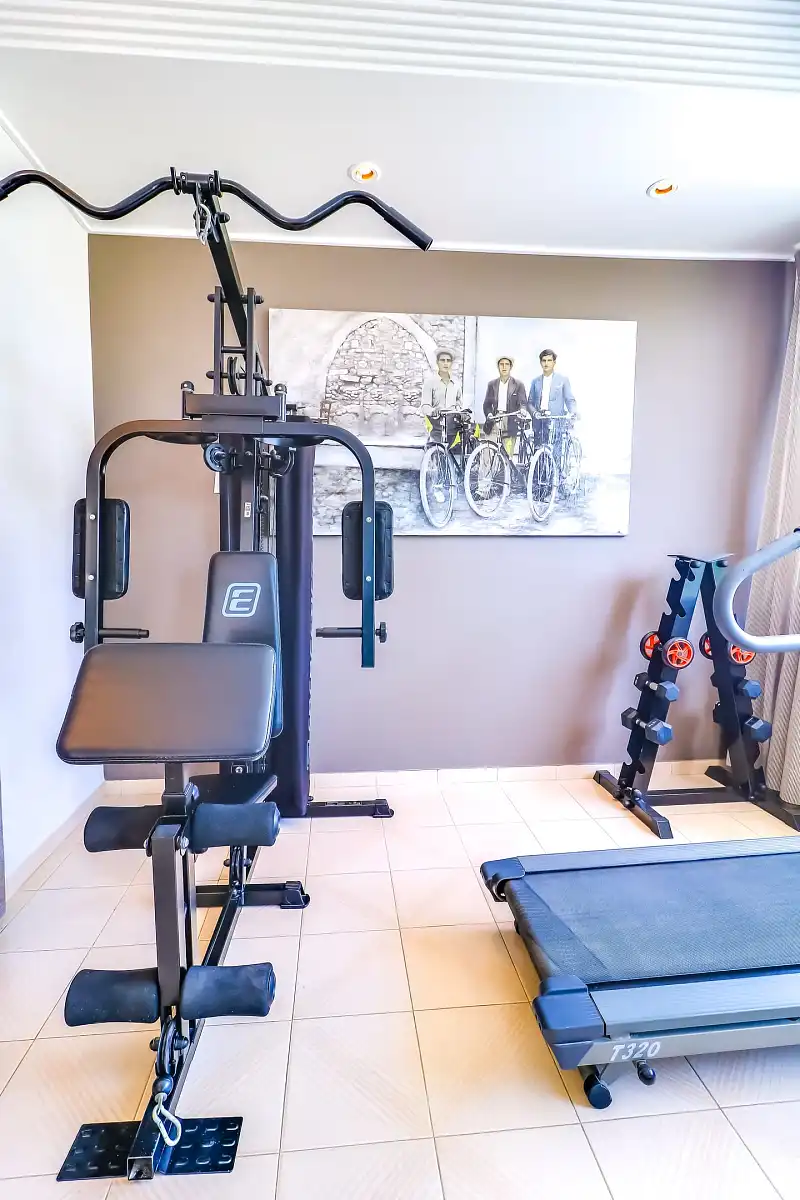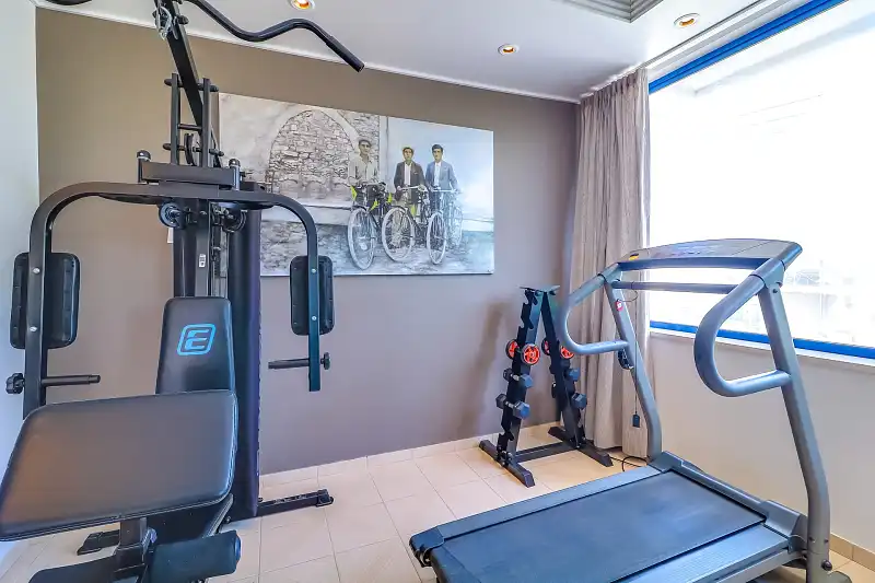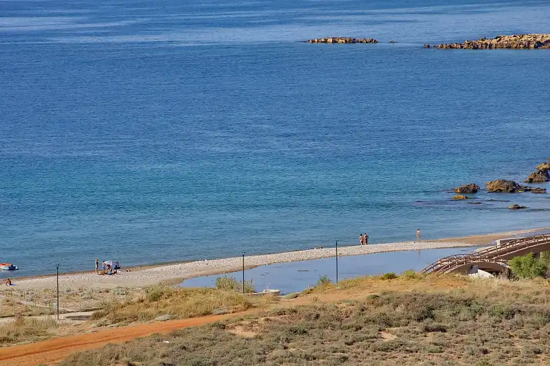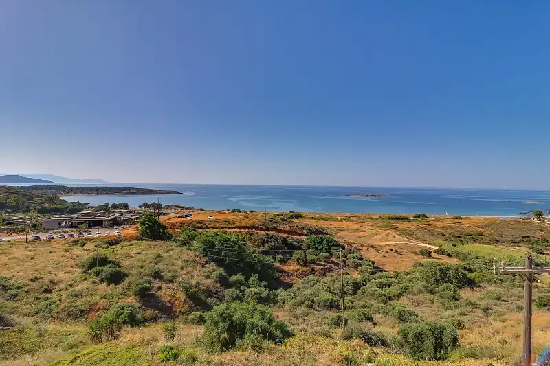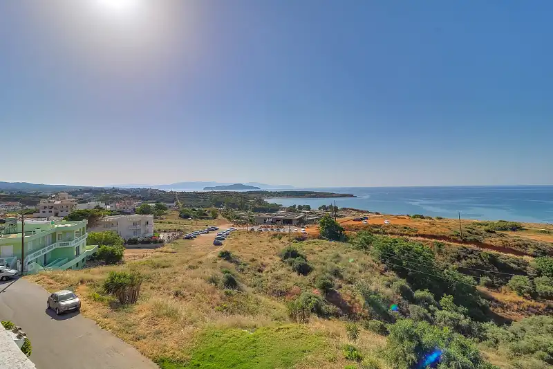 The town center is a 20 minute walk and the nearest sandy beaches of Chrissi Akti and Agioi Apostoli, a 10 minute walk. A shuttle bus to the city center runs every 20 minutes and costs 1,15 euro.