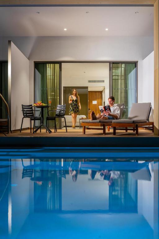Facilități excepționale: Hotelul dispune de un centru spa, saună, sală de fitness, teren de tenis și piscine interioare și exterioare. Facilitățile suplimentare includ o baie de aburi, o cadă cu hidromasaj și servicii de infrumusețare.