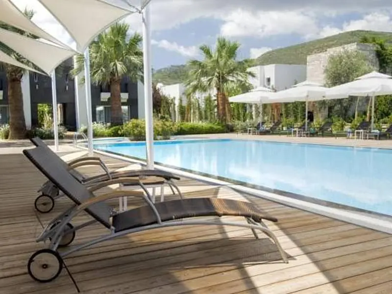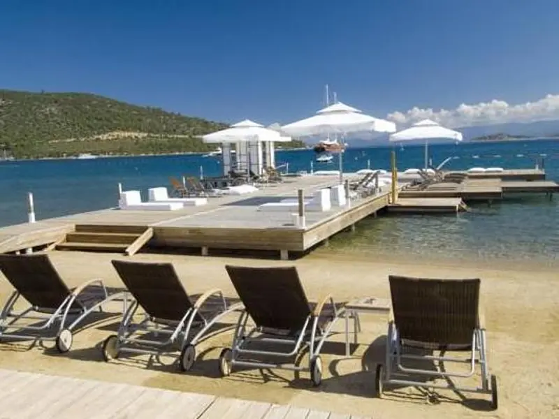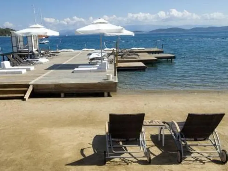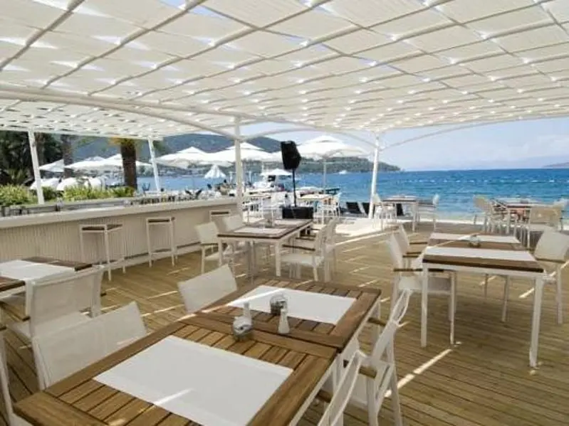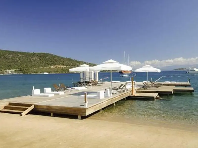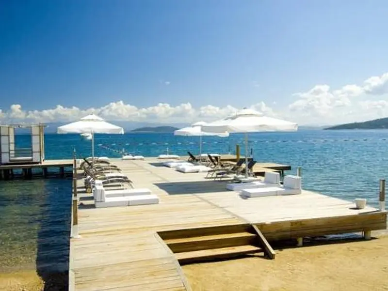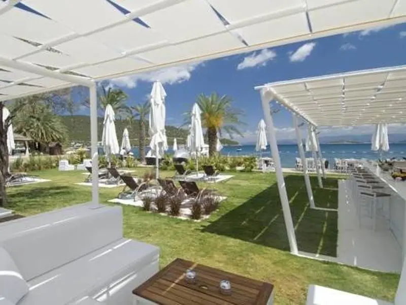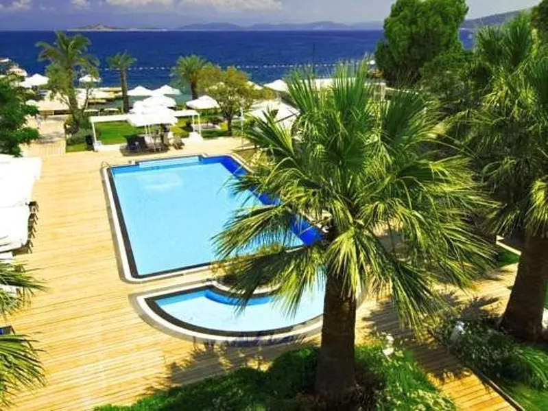 This hotel enjoys a great location on the beach in the small resort of Torba, just a short stroll from the Centre Street and 80 m from the closest bus stop. The big resort-town of Bodrum is a 20-minute ride away and offers a number of sites such as the Bodrum castle, St. Peters castle and the Museum of Underwater Archaeology, just to name a few. The small establishment itself is built in the traditional local style and consists low-rise blocks painted in white and set within a pretty garden. The garden separates the beach from the venue and the ottomans and loungers spread in it are the perfect place for anyone who wants to relax and read a book at just minutes from the hot sand and the opal-blue waters.