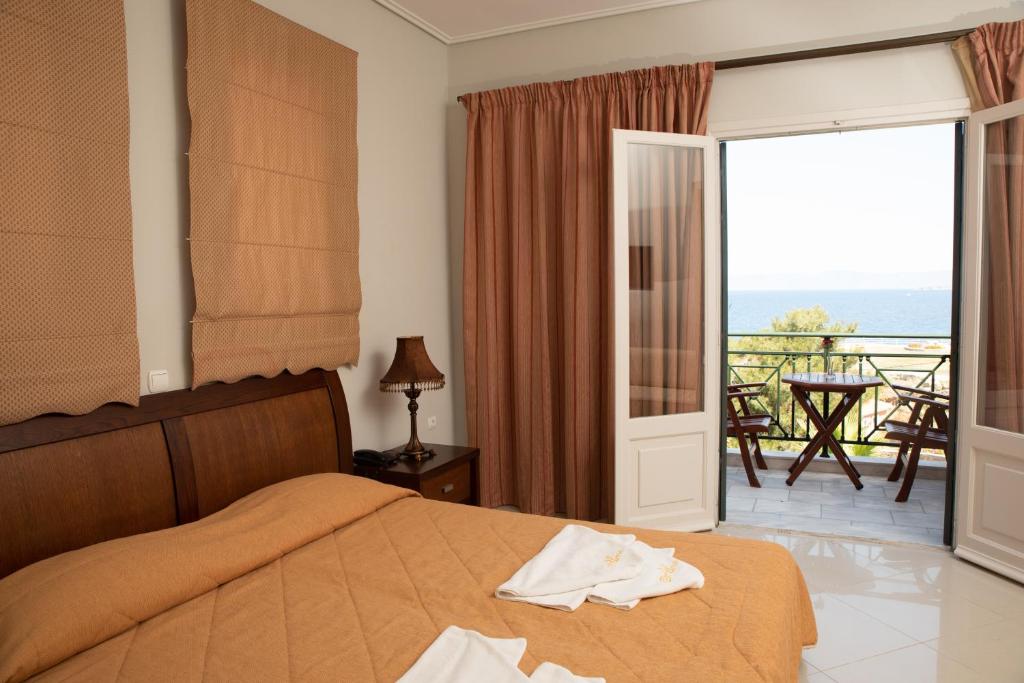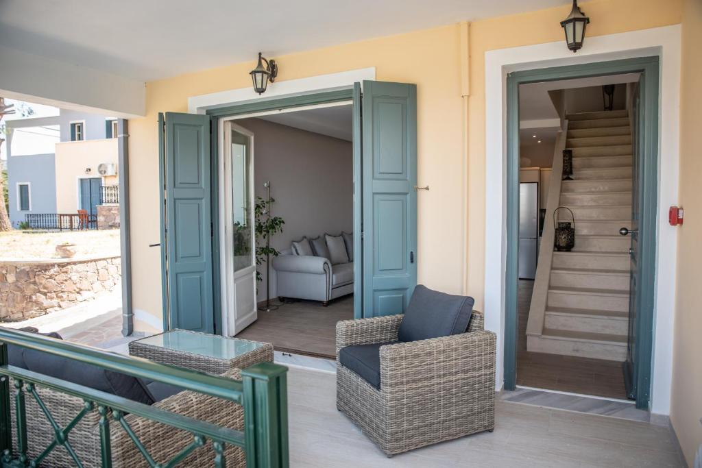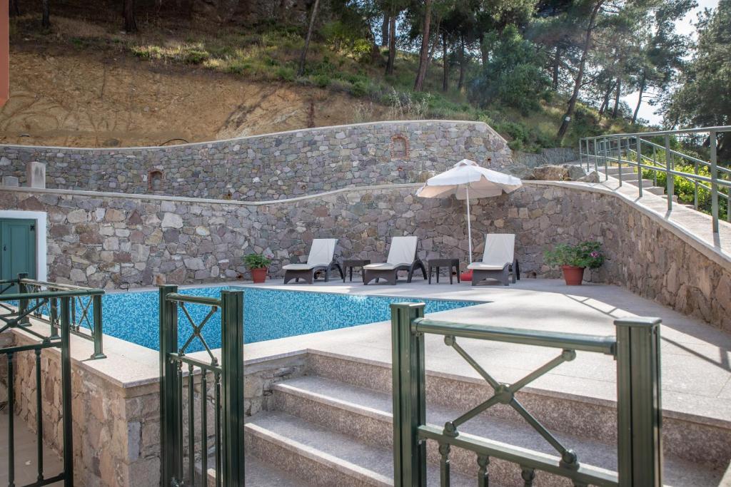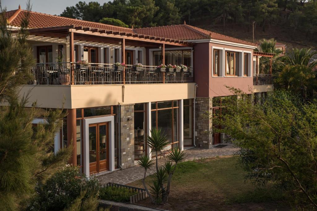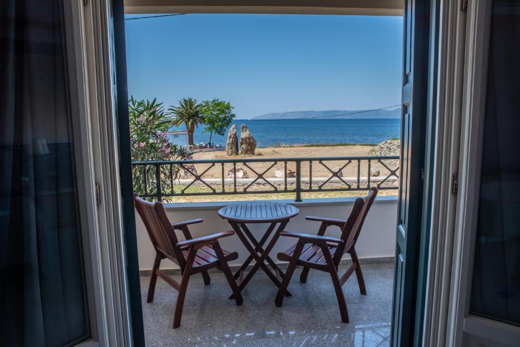 Camerele sunt dotate cu aer condiționat, TV prin satelit, minifrigider și uscător de păr. Oaspeții pot savura mese ușoare și băuturi pe o terasă cu pergolă și vedere panoramică la Petra și Molyvos. Cafeneaua servește cafea și băuturi pe tot parcursul zilei. Centrul localității Petra este situat la 800 m, iar orașul Mythimna, la 5 km. Receptia are program nonstop și poate aranja inchirieri auto. Proprietatea oferă parcare privată și WiFi gratuit.