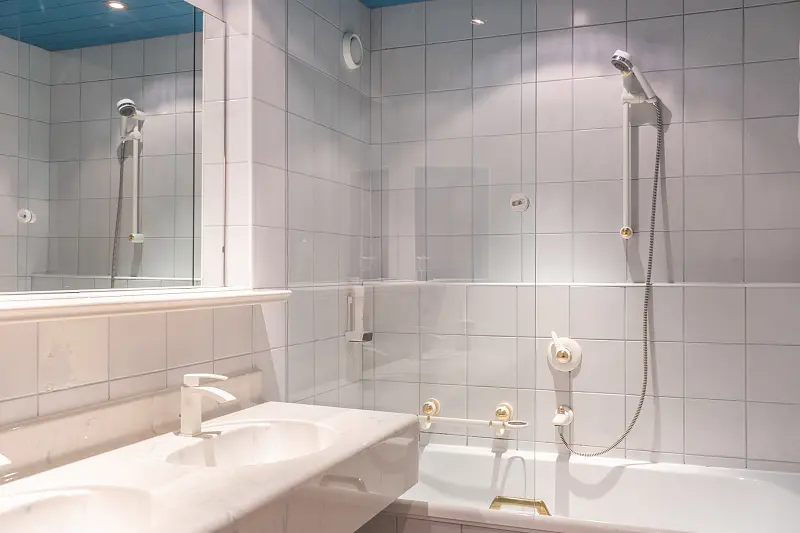 bath room: bath tub / shower, toilet, hair dryer, bath robe - free of charge
