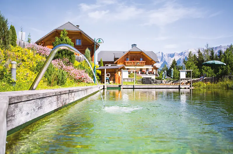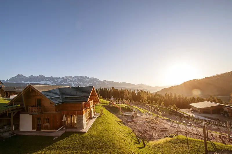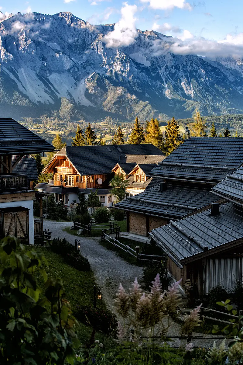 Beautiful, idyllically situated is the cosy Almdorf Reiteralm at 1200m, the centre of which is the comfortable Almhotel Edelweiss, built in country house style with 14 rooms, surrounded by alpine huts with cosy bedrooms (small houses with 105 m² and 2 large houses with 220 m²). Newly built in 2006, the village is an El Dorado for hikers - quiet, unique location with a view of the fascinating Dachstein-Massiv and the beautiful Enns Valley. facility / Ambiance: comfortable, family friendly, luxurios, modern target audience: sport & active travellers, couples, nature lovers, senior citizens, wellness travellers, young travellers, families