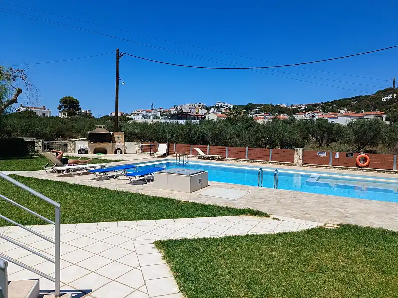 Nearby beaches offer shallow waters ideal for children, and various water sports and excursions are available for hire, including windsurfing, kayaking, sailing, and snorkeling. Explore nearby attractions such as the ancient city of Aptera and the bustling streets of Chania, easily accessible via the nearby National road junction.