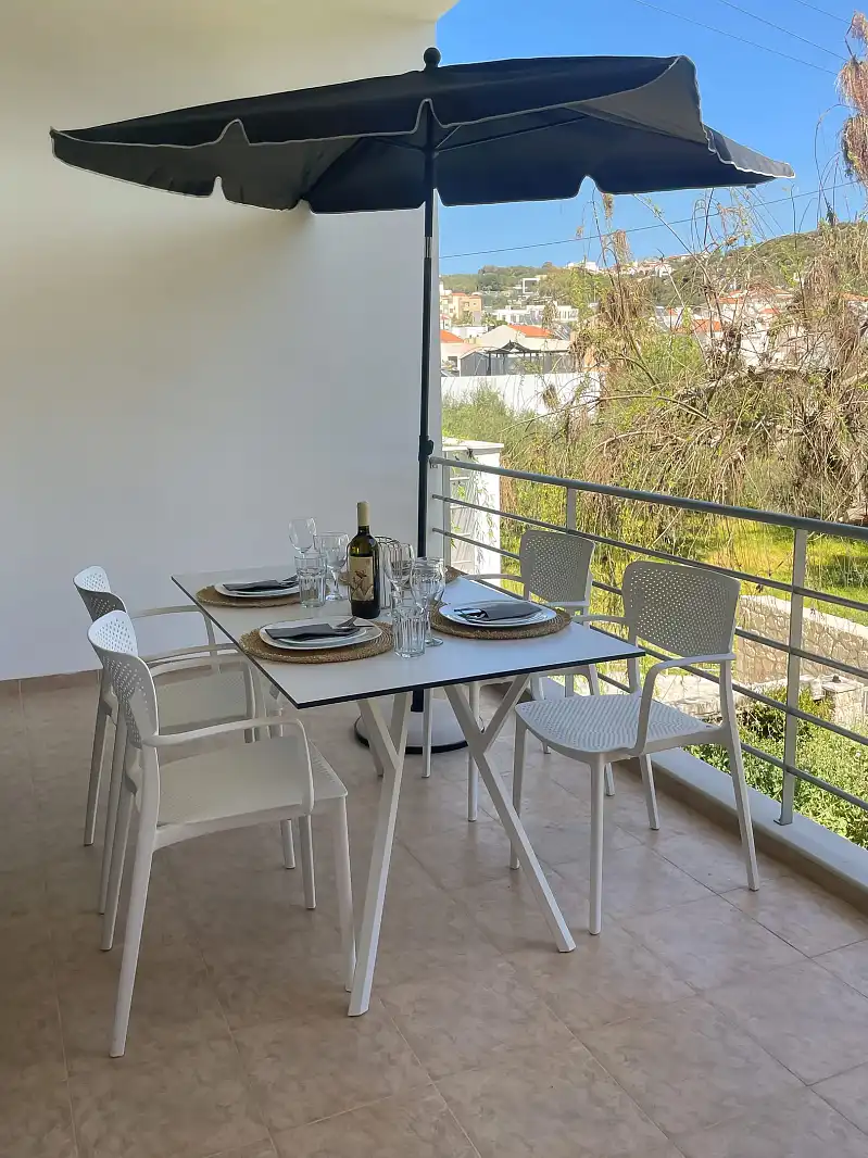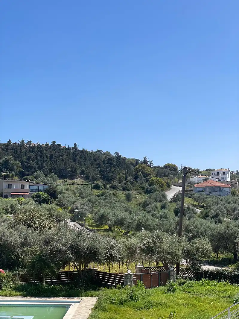Relax in our serene environment with a shared pool and garden, offering the perfect setting for unwinding. Enjoy the convenience of open-plan living, bathroom with shower, air conditioning, and a fully furnished interior, along with amenities such as a safe box, Iron/Ironing board, hair dryer, washing machine, clothes rack and off-road parking. Step out onto your private balcony overlooking olive trees, where you can unwind in peace.