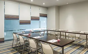 <strong>Property Location</strong><p>With a stay at Aloft Abu Dhabi in Abu Dhabi (Capital Centre), you'll be within a 5-minute drive of Abu Dhabi National Exhibition Centre and Zayed Sports City Stadium. This upscale hotel is 3.6 mi (5.8 km) from Sheikh Zayed Grand Mosque and 8.3 mi (13.4 km) from Corniche Beach.<br> Distances are displayed to the nearest 0.1 mile and kilometer. <br /> <p>Abu Dhabi National Exhibition Centre - 0.7 km / 0.4 mi <br /> Al Forsan International Sports Resort - 1.6 km / 1 mi <br /> Zayed Sports City Stadium - 1.9 km / 1.2 mi <br /> Khalifa Intl Bowling Centre - 2 km / 1.3 mi <br /> Miraj Museum - 2.4 km / 1.5 mi <br /> Abu Dhabi Ice Rink - 2.6 km / 1.6 mi <br /> Mangrove Lagoon National Park - 3.9 km / 2.4 mi <br /> Mushrif Mall - 3.9 km / 2.5 mi <br /> Sheikh Zayed Grand Mosque - 4.4 km / 2.8 mi <br /> Salwa Zeidan Gallery - 4.8 km / 3 mi <br /> Al Maqtaa Fort - 7.7 km / 4.8 mi <br /> Al Jazaeera Sports Club - 7.7 km / 4.8 mi <br /> St. Andrew's Church - 7.9 km / 4.9 mi <br /> The Souq at Qaryat Al Beri - 8 km / 4.9 mi <br /> Women’s Handicraft Centre - 8.2 km / 5.1 mi <br /> </p><p>The nearest major airport is Abu Dhabi Intl. Airport (AUH) - 23.7 km / 14.7 mi</p><br> <strong>Rooms</strong><p>Make yourself at home in one of the 408 guestrooms featuring refrigerators and LCD televisions. Complimentary wired and wireless internet access keeps you connected, and cable programming provides entertainment. Private bathrooms with showers feature designer toiletries and bidets. Conveniences include phones, as well as laptop-compatible safes and desks.<p> <strong>Dining</strong><p>Enjoy international cuisine at Dine, one of the hotel's 5 restaurants, or stay in and take advantage of the room service. Snacks are also available at the coffee shop/cafe. Unwind at the end of the day with a drink at the bar/lounge or the poolside bar. Buffet breakfasts are available daily from 6:00 AM to 10:30 AM for a fee.<p> <strong>Business, Other Amenities</strong> <p>Featured amenities include complimentary wired internet access, a 24-hour business center, and limo/town car service. Planning an event in Abu Dhabi? This hotel has facilities measuring 23864 square feet (2217 square meters), including conference space. Free self parking is available onsite.<p>