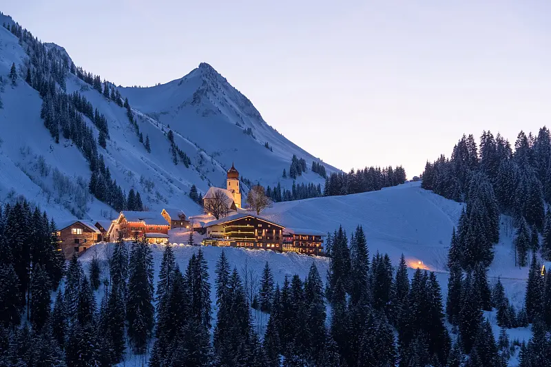 The traditional 4* Hotel Mittagspitze is located in the center of Damüls in the Bregenzerwald and is run with a lot of tradition and love and has a 400 m² wellness area. The small, cozy mountain village between the Grosses Walsertal biosphere reserve and the Bregenzerwald presents itself with authentic charm and is snow.realm and mountain.realm. Many beautiful hiking trails start right in front of the house, as well as slopes that invite you to go skiing in winter. The annex is about 800 meters from the main house. facility / Ambiance: comfortable, luxurios, modern target audience: sport & active travellers, couples, nature lovers, singles, young travellers, families