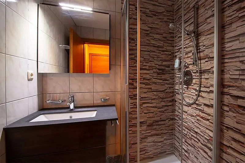 bath room: bath tub / shower, hair dryer, bath robe - optional payable in resort, EUR 15.00 per person and stay, bathing shoes - optional payable in resort, EUR 5.00 per person and stay