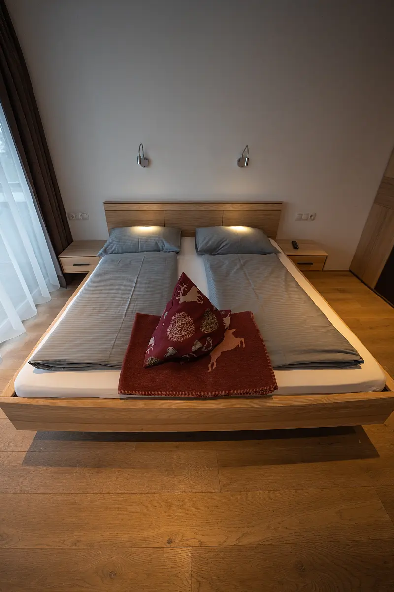 number of beds: double bed 1x, cot as overcrowding possible: Yes