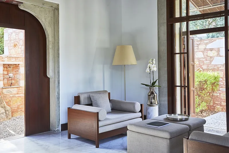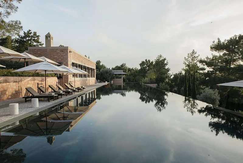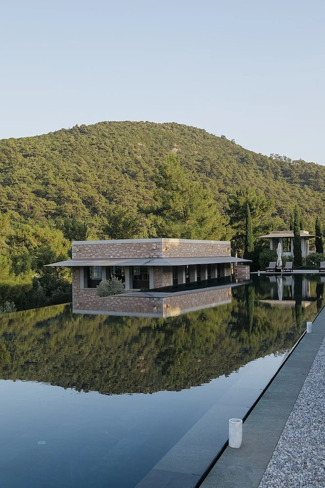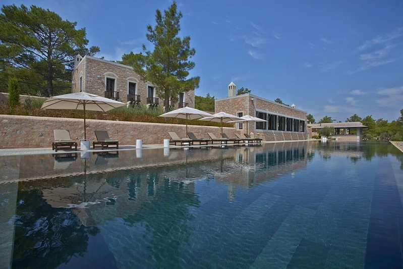 BXN-Bodrum - 0 KM NMilas Airport - 26 KM SWBodrum Castle - 7 KM NTurkbuku - 6 KM SEGumusluk - 18 KM EIzmir - 150 KM SAmanruyal is located on the southeast Agean coats of Turkey on the northern coast of Bodrum Peninsula on Mandalya bay. It is between Torba and Turkbuku and a 30min car drive away from Milas airport - BJV.Pine forests and ancient olive groves carpet the hills around Amanruya leading to scalloped bays with views of the Aegean Sea. The resorts sheltered Beach Club is complemented by a tennis court and Olympic-length swimming pool.Combining Mediterranean design elements with contemporary Turkish features and local materials - such as green marble from Antalya - Amanruyas serene stone structures flow into each other creating an organic rhythm of spaces.Set alongside the central 50-metre pool the spa offers a menu of rejuvenating massages as well as beach-side yoga sessions.Dotted across the property an array of dining rooms and lounges serve up locally sourced Turkish and Mediterranean cuisine.Whether it is a romantic dinner or a joyous group celebration at the Beach Club a beautiful setting ensures a memorable occasion.