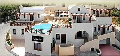 Bine 7,5 booking.com 500 m fata de centru Fira, piscina, jacuzzi, parcare.