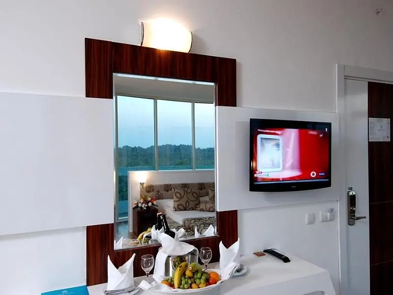 This club resort is located in Belek Kadriye, a tourists paradise and popular golfing area which is located amidst pine forests and numerous natural spectacles. The hotel is 2kms from Kadriye town centre, approximately 7kms from Belek city centre, 1400m from the nearest beach, roughly 35kms from the centre of Antalya and Antalya Airport is around 25kms away. The main building consists of five floors with 210 comfortable rooms decorated in a modern style. Built in 2008, the air-conditioned hotel offers conference facilities and Internet access for guests on business trips. For younger guests the hotel also provides a kids club. Leisure facilities at the hotel include 3 swimming pools. There is also a waterslide and an aqua park, as well as an amphitheatre and light entertainment. There are several golf courses in the area.