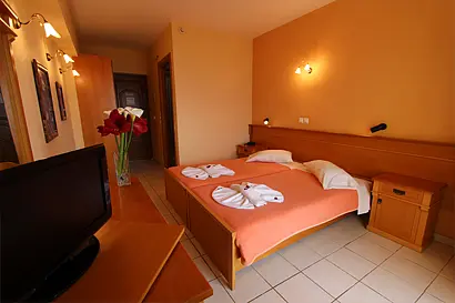 Anastasia Beach Hotel dispune de camere dotate cu balcon cu vedere la gradina sau la mare, baie cu dus, aer conditionat (contra cost), televizor, telefon, frigider, uscator de par, fier de calcat, seif (contra cost), internet wi-fi (contra cost). Se pot solicita patuturi pentru copii.