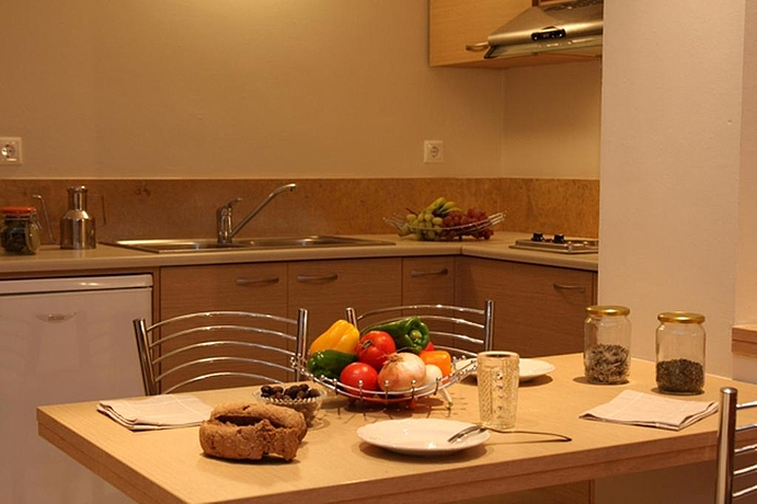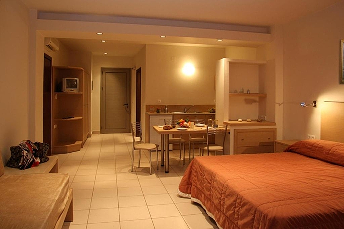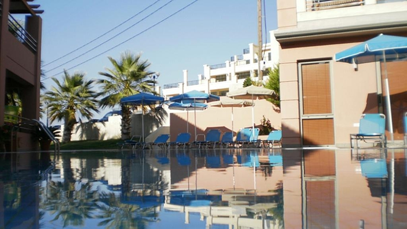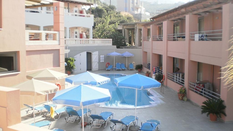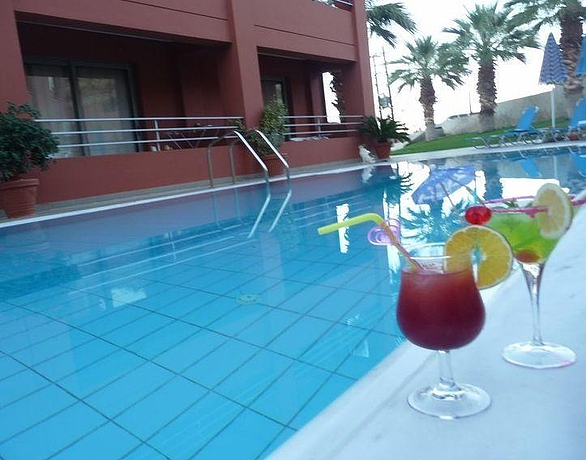 HOTEL: Este hotel es de ambiente muy familiar, cuenta con 18 apartamentos, un vestíbulo, una recepción y 2 terrazas. SITUACIÓN: Está situado en la costa de Creta. Puede encontrar a 23 km Heraklion, a 10 metros aproximadamente los huéspedes del establecimiento pueden disfrutar de una playa, cerca de supermercados, tabernas, cafeterías y la estación de autobuses. A 23 kilómetros tiene disponible el aeropuerto de Nikos Kazantzakis. HABITACIÓN: Las habitaciones cuentan con baño con ducha, balcón o terraza, televisión, nevera, caja fuerte, aire acondicionado con cargo extra, conexión a internet, tetera, cafetera y calefacción individual. INSTALACIONES: Se ofrece una piscina con chiringuito, tumbonas y sombrillas.