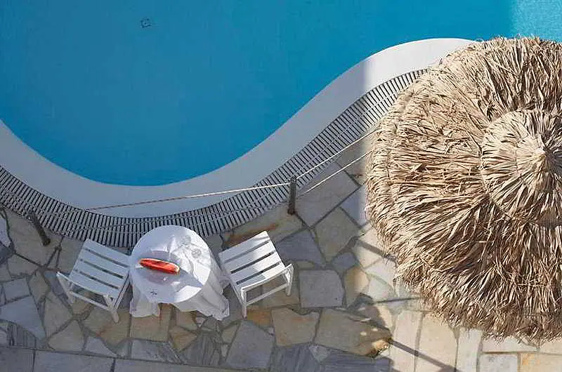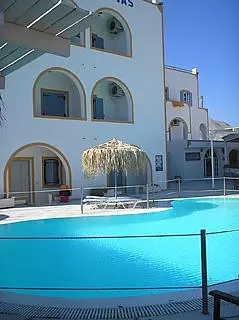 The hotel is located on the seafront of Perivolos Beach, one of the largest black sandy beaches of the island, a marvellous place from where guests can enjoy breath taking panoramic views. Within walking distance guests can reach the village of Perissa, a fabulous example of the typical Aegean Cycladic Architecture. In the area a number of bars, restaurants and clubs can be found. It lies 8 km from Athinios Port and Santorinis international airport and the capital are around 12 km away.