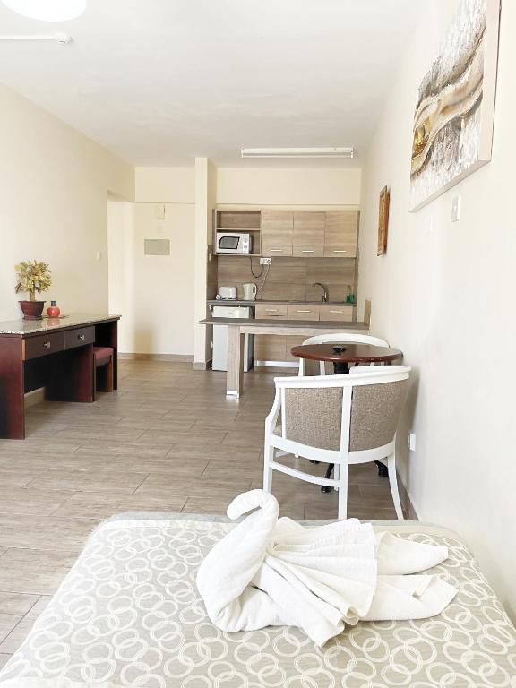 Barul de la piscină servește băuturi, gustări și inghețată. Micul dejun englezesc complet, pranzul și cina, inclusiv preparate cipriote, sunt servite in restaurant. Oaspeții se pot bucura, de asemenea, de o cină tip bufet in jurul piscinei. Inchirierea de mașini poate fi aranjată la hotel, iar recepția este deschisă nonstop.