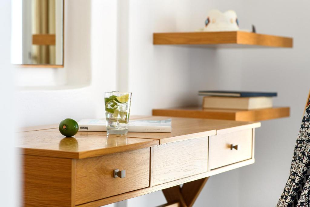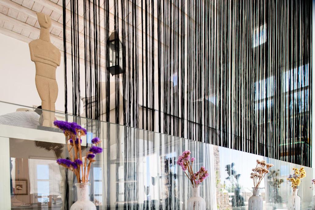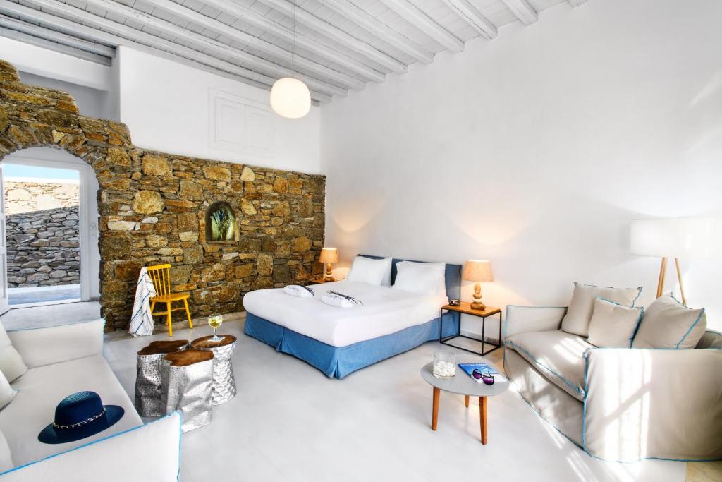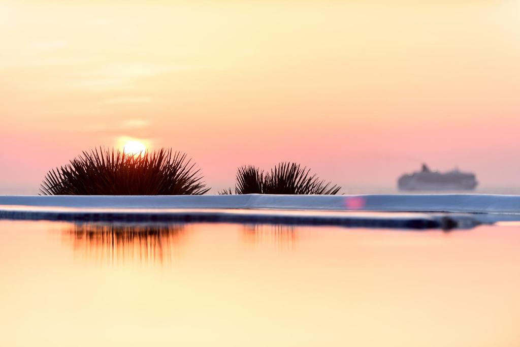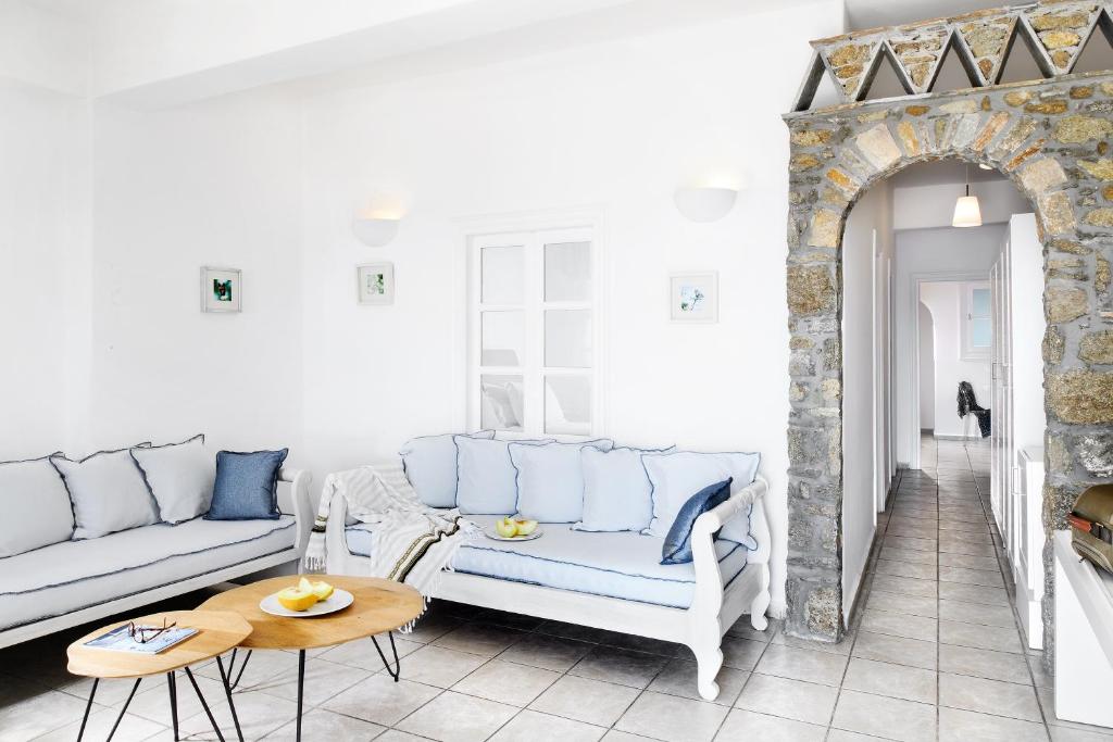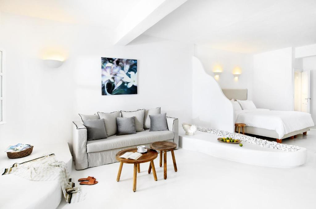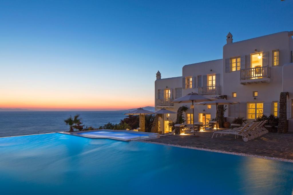 Hotelul la plajă se află în centrul al orașului Mykonos, direct pe o arteră principală, la aproximativ 1,5 km de plaja cu nisip, pentru turiști de la plajă și familii reprezintă un punct ideal de pornire pentru a descoperi orașul. Se poate ajunge pe jos în cca 5-10 minute la diverse locuri de ieșit în oraș și locuri de divertisment. Aeroportul Mykonos/Mikonos (JMK) este la aproximativ 5 km.