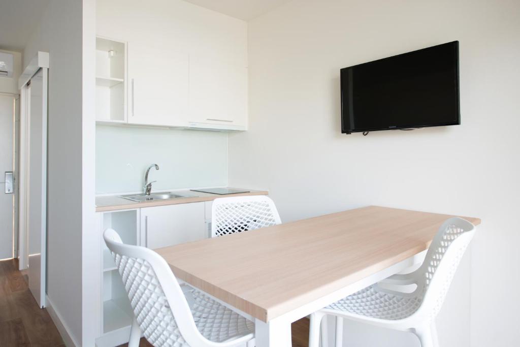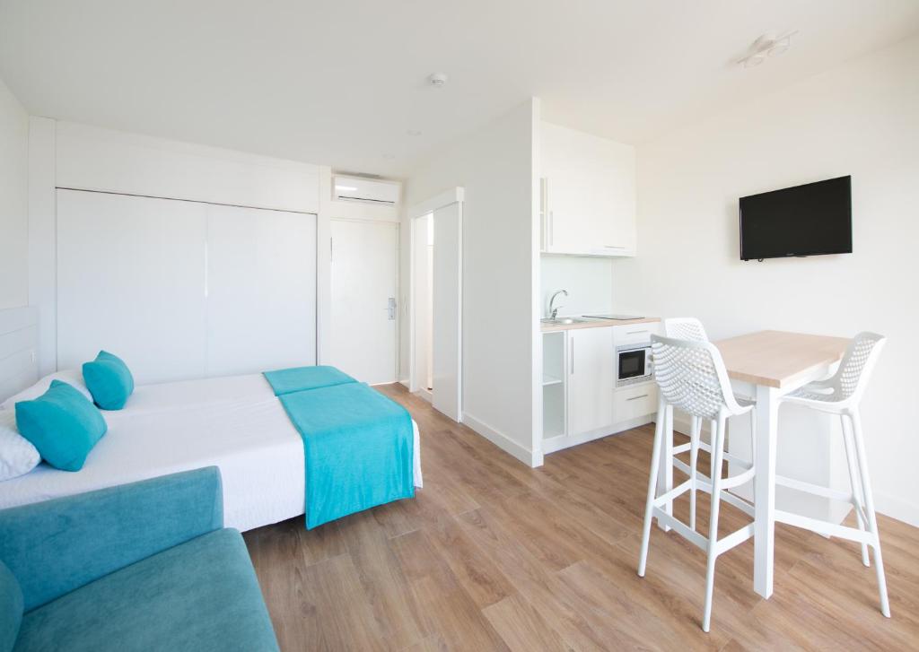 Recommended for adults, the studios feature a private balcony or terrace and include 1 double or 2 single beds, a sofa, 32' flat-screen TV with international channels, and a small dining area. A safe is available for a surcharge. The kitchenette comes with a hob and a microwave, and there is a hairdryer in the bathroom. Free WiFi is available in the reception area, and a portable hotspot can be requested for an additional cost.