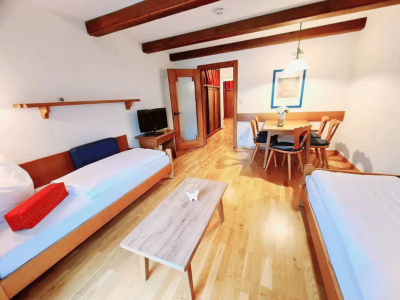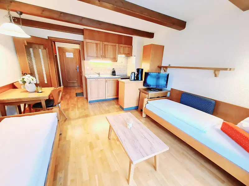 Quaint cozy aparthotel - country house in the center of the village, 100 m to the thermal spa St. Kathrein, 200 m to the Maibrunnbahn, 100 m to the bus stop, sunny and centrally located. All apartments are equipped with kitchen, shower, WC, living room, and depending on the booking with bedroom and balcony. There are mono apartments, and apartments with 2 rooms. The two single beds in the B apartment balcony mountain view "for 2 people" can be pushed together. facility / Ambiance: family friendly, rustic, small / homey, suitable for children, home-made target audience: sport & active travellers, group travellers, backpackers, couples, motorcycle travellers, nature lovers, shorttrip travellers, singles, young travellers, mountainbiker / bicycle travellers, cultural travellers, families, golf club travellers, homosexual, long term tourists, singles with kids