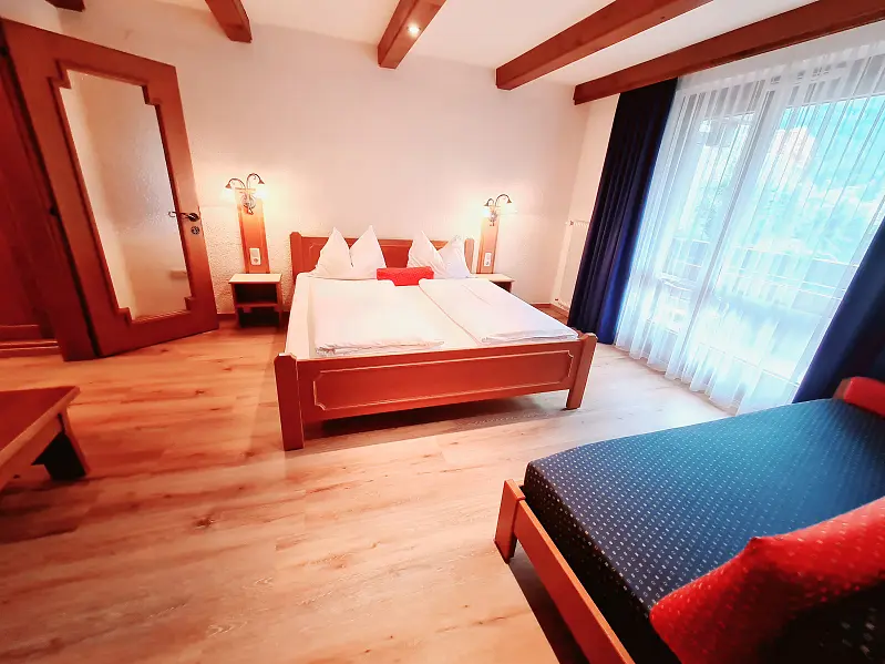 The two single beds in the B apartment balcony mountain view "for 2 people" can be pushed together.