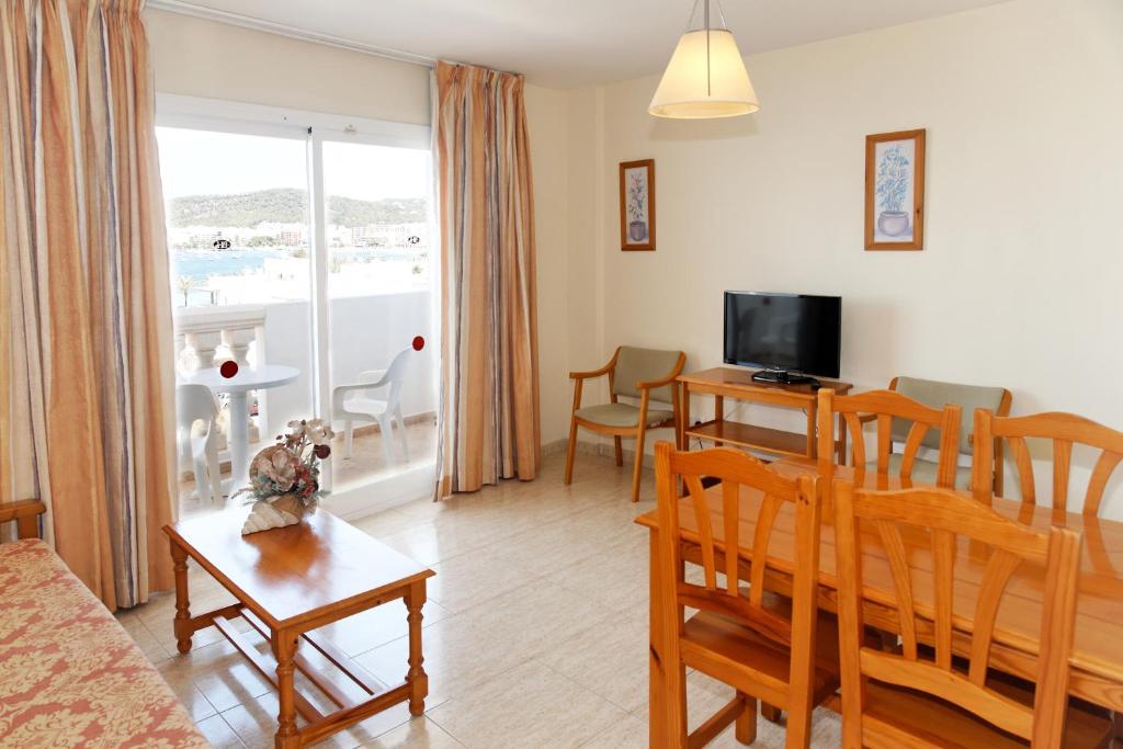 Aparthotel Reco Des Sol este situat la 1,5 km de centrul istoric al orașului Sant Antoni și la 15 minute de mers pe jos de baruri și cluburi pline de viață, printre care și faimosul Es Paradís.